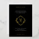 This black wedding invitation features a modern diamond-shaped monogram at its center, with the bride and groom's initials prominently displayed. The monogram is surrounded by classic typography in a white and shiny gold foil, adding a touch of elegance to the design. Delicate floral details further embellish the invitation, giving it a romantic and timeless feel. The overall design is sophisticated and unique, making it a perfect choice for a stylish and sophisticated wedding.