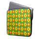 Geometric pattern design featuring diamond shapes, in orange, green and yellow, by Ron Trickett.