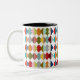 This mug has a Bauhaus design of overlapping diamonds in retro colors.