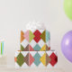 This wrapping paper has a Bauhaus design of overlapping diamonds in retro colors.