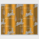 A very festive, luxe golden Christmas wrapping paper featuring a sparkling pattern of reindeer made of tiny diamonds and sparkles (printed only). There are also modern, silver Christmas trees and Merry Christmas greetings all on a gold metallic background.