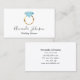 This business card features a beautiful gold and blue toned diamond ring graphic design on the front with your name and title, with the entire back side available for custom information including address and phone number. Perfect for a wedding planner or wedding photographer.