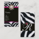 DIAMOND STAR PINK BLACK WHITE ZEBRA FUR MONOGRAM BUSINESS CARD