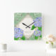 Diamond Swirl Blue Hydrangea Wedding Anniversary Square Wall Clock