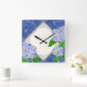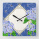 Diamond Swirl Etchings Blue Hydrangea Home Decor Square Wall Clock