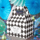 Crisp, minimalistic black and white birthday favor box. Strong diamond pattern is tiled pattern with oval label for birthday party favors. Can also be used for weddings, and other occasions.