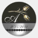 DIAMOND TULIPS BLACK WHITE GREY MONOGRAM CLASSIC ROUND STICKER