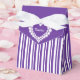Diamond wedding or diamond anniversary party thank you gift box in purple and white. Great to add a touch of personalized bling to diamond styled wedding or diamond wedding anniversary parties, dinner parties and informal gatherings. Ideal gift idea as a wedding favors or to place on reception dinner tables or party tables filled with sweets or gifts. Would also make a nice parting commemorative thank you for coming gift. Grey and white diamond heart effect art and design by Sarah Trett.