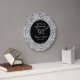 Encrusted diamonds and silver( image not real or fake diamonds) and silver and red hearts. 25th wedding anniversary customizable clock.