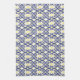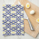 Elegant and decorative towel with an eye-catching design in navy, yellow, and white. Lattice like pattern made up of swirls and diamonds.