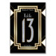This elegant Wedding Table Number Thirteen card is in a vintage nineteen twenties Art Deco style. The bold graphic design is presented in classic black and white with subtly shaded faux gold accents. A faux diamond look numeral in a period correct font forms the focal point of this card.