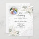 For an elegant and romantic 60th wedding anniversary. A white background decorated with white florals, roses, faux diamonds and white lace. Personalize and add your photo, names and details.