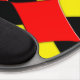 The plastic backing is nice and sturdy. The grippy pads underneath keep the mouse pad where I put it on my table. The pad the mouse sits on is cut well to fit the backing. The wrist pad is perfectly soft, supportive, and thick. I'm left-handed, and this mouse pad works just as well for me as it does for my right-handed friends. I'm the designer of HippieClecticHope products. I'm blown away by how well my intricate fractals turn out on the tangible items in the Zazzle Marketplace. This particular mouse pad ***appears*** like a 3D object... A mathematically-engineered rainbow black opal, inlaid under transparent fabric...