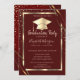 Diamonds Gold Frame Grad Cap Red Graduation Invitation