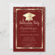 Diamonds Gold Grad Cap Red Graduation Invitation