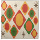 An atomic age mid century modern 1950s era abstract art with starbursts in ovals in rounded diamonds. Colorful, multicolored, light, red, orange, yellow, and green.