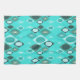 An atomic age mid century modern 1950s era abstract art with starbursts in ovals in rounded diamonds. Blue green, teal, turquoise, light blue, mint green.