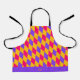 Great color and even though I ordered the kid size, it covers well enough to use during the holidays. I am not a big woman and prefer a shorter apron. I stand 5"6" and the length of the garment goes to mid-thigh. The tie straps fit well at my waist and even though there is no neck strap adjustment, the opening is plenty big enough. I am happy with the size and fit. I am sharing my apron with my 10 year old grandson, too! The color is vibrant and looks good, as shown on the website. The stitching looks strong and reinforced. Photographed is front side and back side of the apron, reinforced straps and coloring. My phone camera may not be the best at showing the details.