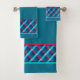 I ordered these towels because I am getting ready to stage my house for sale and wanted some really pretty towels to show off the bathroom. These are an absolutely perfect match for the teal walls and I could not be more pleased. Not only do they look beautiful, they also seem to be very good quality. They are different than any other towels I've had, as the surface fibers are not looped. I love that because I have never liked how most towels have loops that snag and pull no matter how careful you are. I pre-washed them and they came out beautifully. The towels are generously sized and they don't feel flimsy at all. I did not read the description well enough to understand I was paying as much as I was paying for just exactly what was pictured: not a set of two, but a single towel, hand towel and washcloth, so they are way more expensive than I thought (which was a lot, considering). However, I still love them enough that I went ahead and ordered a single additional bath towel so that I would have an actual set, but will need to buy a couple of solid color washcloths. Pricing is weird, because a single wash cloth is priced higher than a large bath towel?? Anyway, if you can afford them, these towels are fantastic. I would never pay this much except to show off a house for sale, but now that I've done it I will love them in my new home as well. Gorgeous! Vibrant Colors and exactly as pictured,..maybe evern better!