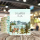 For the Diaper raffle table at your baby shower. This design has rustic, watercolor mountains with reflecting lake in front, and pine trees surrounding the lake. Adult deer with her fawn in front. “Diaper Raffle” text at top.