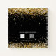 A stylish black background with faux gold confetti. Add a year, your name, and a title. The name is written with a modern hand lettered style script.