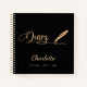 A chic black background. With the text: Diary and decorated with a feather pen. Personalize and add a name and text (or delete)