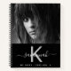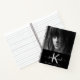 A chic black background. Personalize and add your own photo, a name, monogram letter and a year. The name is written in white with a large modern hand lettered style script with swashes. The monogram letter in gray. For school, work, as a diary and for journaling.