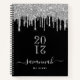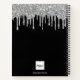 A chic black background with trendy faux silver glitter drips, paint dripping look. Personalize and add a name, your monogram letter and a title. The name is written with a large modern hand lettered style script with swashes. To keep the swashes only delete the sample name, leave the spaces or emoji's in front and after the name. White and gray text. Use it as a diary, journal, for taking notes, for school, work or your home office.