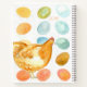 A notebook decorated with fresh eggs from a variety of chickens and a sweet hen on the back. Brown eggs, grey green, grey blue, blue and white hand painted with watercolor accented with spatter for a speckled effect. Great for keeping a daily journal of your activities on the farm. Also a fun gift for a chicken farmer!