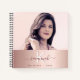 A faux rose gold, pink metallic looking background. Personalize and add your own photo, a name, monogram letter and a title/year. The name is written in dark rose gold with a large modern hand lettered style script with swashes. Can be used as a diary, for journaling, taking notes, to-do lists.