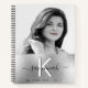 A faux silver metallic looking background. Personalize and add your own photo, a name, monogram letter and a year. The name is written in black with a large modern hand lettered style script with swashes. The monogram letter in white. For taking notes, as a diary, journaling, school, work or organizing your personal/family life. To keep the swashes only delete the sample name, leave the spaces or emoji's in front and after the name