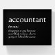 A dictionary definition of ACCOUNTANT is in bold white text on a black background.