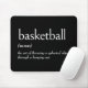 A dictionary definition of BASKETBALL is in bold white text on a black background.