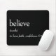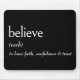 A dictionary definition of BELIEVE is in bold white text on a black background.