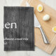 A dictionary definition of KITCHEN is in bold white text on black wood.