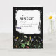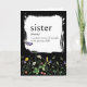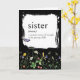Bold white dictionary definition for a SISTER on black with a wildflower border and a purple butterfly for a sister's birthday.