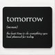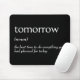 A dictionary definition of TOMORROW is in bold white text on a black background.