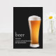Dictionary's definition for BEER with a glass of foaming beer on rustic whitewashed wood for a birthday.