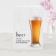 Dictionary's definition of BEER with a glass of foaming beer on rustic whitewashed wood for a birthday.