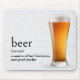 Dictionary's definition of BEER with a glass of foaming beer on rustic whitewashed wood.
