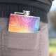 Well made flask, a little better than I had expected. Flask came in clear plastic box which gave it a nice presentation when I took it out of the zazzle packaging. Image is not printed on flask but on sticker. Don't know how this will hold up I haven't used it yet. This would make a Great gift! I plan to purchase more for friends! Cheers. I thought a little brighter than computer. Very crisp, writing wasn't