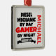 This ornament featuring the quote "Diesel Mechanic by Day Gamer by Night" is perfect for any diesel mechanic that loves playing video games.