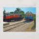 A class 3700 diesel locomotive, used in sugar cane transport and a Brill Railcar transporting people, meet at Maquay, by the branchline to Manuel Tames. Cuba