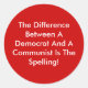 Difference Between A Democrat And A Communist Classic Round Sticker