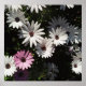 One pink daisy among a bunch of white daises.