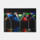 Different cocktails in martini glasses with lights doormat