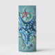 Blue turquoise green and white colors painting of a big blue starfish seashell in the middle of other types of smaller seashells, like other starfish, sea urchins, scallops seashells, cowrie shells, clam shells, conch shells, and more. Most of these types of seashells can be found in the tropical sea, and the blue green and turquoise painting is a beautiful representation of the colors of the sea, especially in a tropical sea resort, an awesome vacation destination.