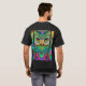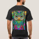 As you turn around, the back of the shirt unveils a masterpiece of vibrant digital art: a majestic owl rendered in an explosion of colour and detail, each hue meticulously chosen to create a harmonious yet dazzling display. The owl's eyes, bright and piercing, convey a sense of wisdom and mystery, drawing you deeper into its gaze.