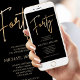 Digital Black and Gold 40th Birthday Mobile Invitation designed for a stylish milestone celebration. Perfect for sending instantly via WhatsApp, text message, or email, this elegant phone invitation features a modern black and gold theme ideal for a sophisticated 40th birthday party. A convenient and beautiful paperless invite for celebrating this special occasion.