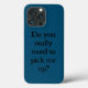 Introducing our "Digital Detox Reminder" Phone Case – a subtle yet impactful accessory designed to encourage mindfulness and a break from constant screen interaction. With the simple yet powerful message, "Do You Really Need To Pick Me Up," this phone case serves as a gentle nudge towards a healthier relationship with technology.